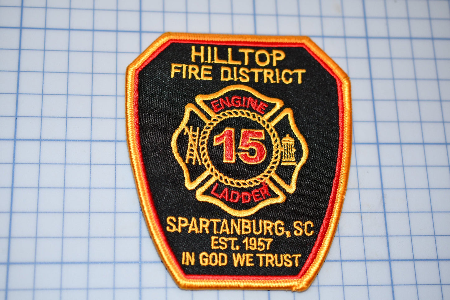 The Hilltop Fire District South Carolina Patch is an authentic fire department patch designed to honor and represent the dedicated emergency responders of the Hilltop Fire District. This firefighter emblem delivers a proud symbol for firefighters and collectors alike, showcasing the heritage and valor of South Carolina’s fire service. Crafted with precise embroidery, this custom fire patch measures 4 inches in diameter, making it a perfect addition to any firefighter uniform patch or firefighter gear badge.